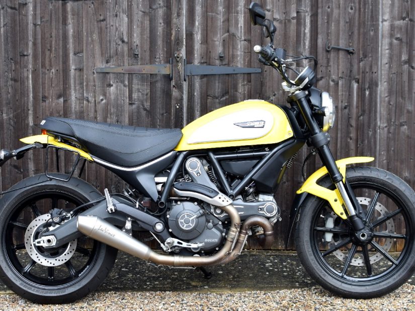 Delightful 2015 65 Reg. Ducati Scrambler Icon 800 ABS in Yellow with Aluminium fuel tank covers