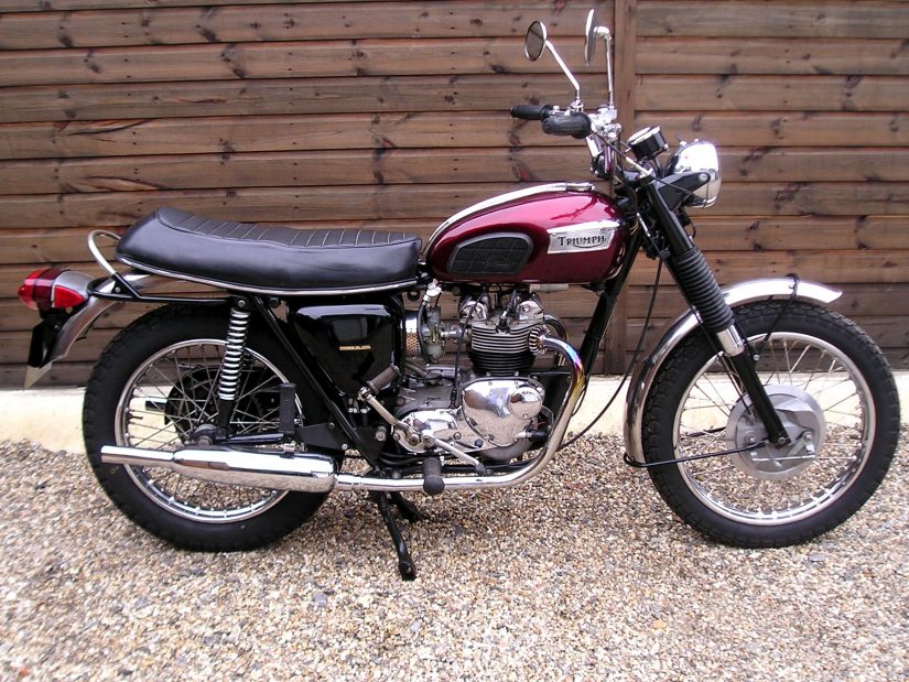 Delightful Triumph Trophy 100C 500, in Maroon and Silver. 1970 vintage with matching frame and engine numbers. Imported from the USA around 3 years ago, this was a good bike that has now had a sympathetic, moderate restoration from it’s Triumph Owners’ Motorcycle Club (TOMCC) member and is now a beautifully clean, fit and healthy example. We have a fair amount of American paperwork showing it’s provenance, and various import and registration documentation. Recently registered on to a 1970 ‘H’ suffix plate by it’s sole UK owner. The T100C model was a more rugged, ‘Scrambler’ esque variant of the more powerful Daytona T100R. Key differences were high level single side mounted exhausts, a detuned motor offering 38bhp (vs. 41) a single Amal carb (vs. twin) no tachometer, a smaller front brake and a smaller headlamp. This particular bike remains true to it’s origins other than for the fitment of brand new, more elegant, low mounted T100R Daytona silencers that, as with all these old British twins sound superb, so reminiscent of a golden bygone era. Restoration work included beautifully re-finished petrol tank, powder coating and re-chroming to many parts, overhaul and recalibration of the speedometer, new oil seals to the motor, re-spoked and trued wheels, new tyres, fitment of Boyer electronic ignition and the previously mentioned new replacement silencers, in addition to much more. So, an excellent example of a classic British bike, one that starts, runs and rides just as it should, and that will instil much pride of ownership and pleasure. It will only increase in value, but can very much be used and enjoyed on those sunny summer rides