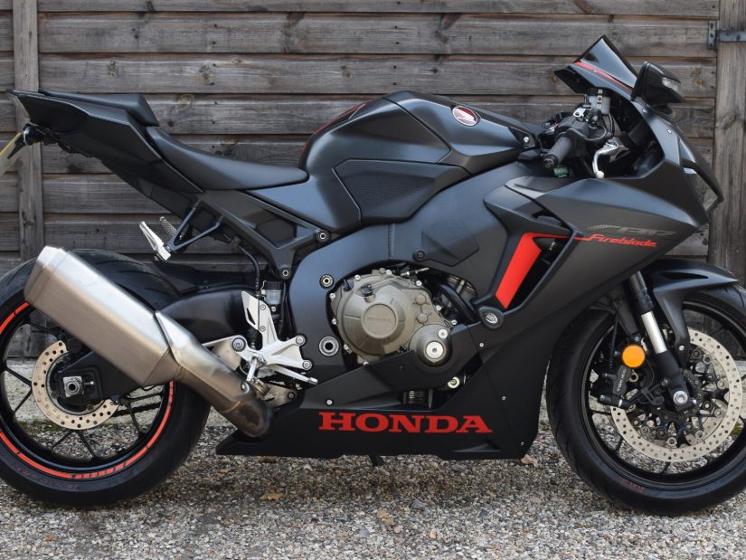 In 2017, Honda launched an all new model Fireblade. By far the most powerful, fastest and technologically equipped Fireblade ever at that time, it featured a heavily revised motor with 189bhp, DLC coated pistons, new cams with greater valve lift, higher 13.1 compression ration and increased 13000rpm rev limit, Full colour liquid TFT dashboard with 3 display modes (Street/Circuit/Mechanic) 5-Axis Inertial Measurement Unit (IMU) 9-Level Honda Selectable Torque Control Traction Control (HSTC) Honda Electronic Steering Damper (HESD) Throttle By Wire (TBW) Rear Lift Control (RLC) Wheelie Control, Bosch ABS, 3-Level Electronic Braking Control (EBC) 3 Rider Modes (Track/Winding/Street) 5 Selectable Power Levels, Fully adjustable 43mm dia. BPF Showa forks, Fully adjustable Unit Pro Link gas damped HMAS rear suspension, Tokico 4-piston radially mounted calipers with fully floating 320mm dia. discs and track spec. pads, Aluminium 5 ‘Y’ design rims, Full LED lighting, Factory fitted HISS immobiliser and Datatag markings.